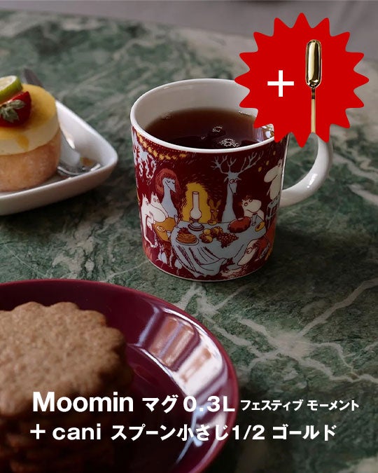 特別なバックスタンプに加えcani スプーン小さじ1/2 ゴールドがセットになったフェスティブ モーメント。在庫限りのためどうぞお早目に。福
