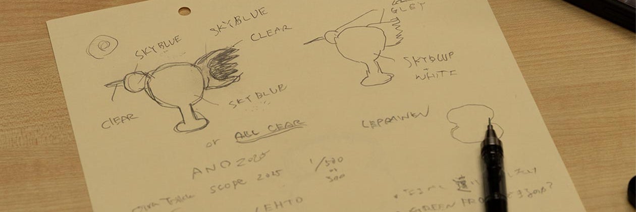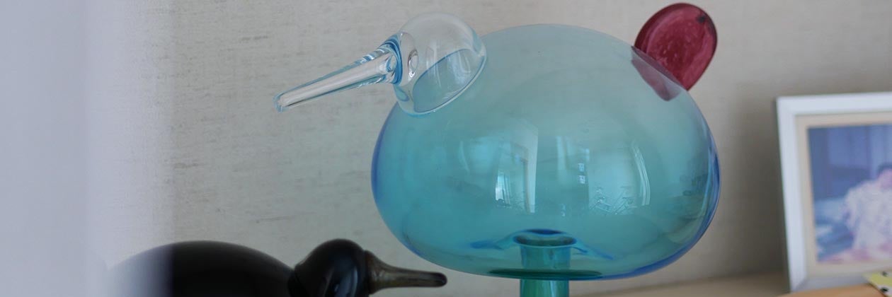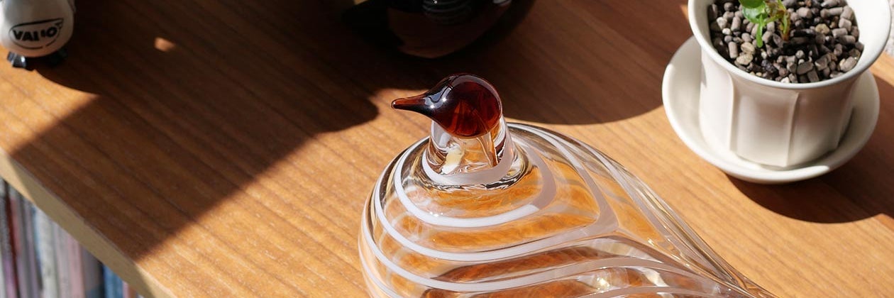 オイバ・トイッカ(1931ー2019)と一緒にガラス工場へいってスコープ別注バードを作ってみたいなぁ~と思い続けていました。周りからは「デザイナーと一緒に作るって意味が分からない。」とよく言われたものでした。実際、僕も具体的にどういうことなのかわからないまま、何故かそうしたいとだけ思っていたのですが、ある時オイバ・トイッカと直接会ってゆっくり話をする機会があり、一緒にバードを作ってみたいと伝えましたら「工場へ行こう」と誘ってくれて、すぐにヌータヤルヴィガラス工場へ行く予定が組まれました。で、いきなりスコープの完全オリジナルバード4種(アノー、ウグラ、ラカティ、キーックリ)が誕生しています。僕がアイデアを出し、オイバ・トイッカが試作をしてくれる。その試作を見て僕は感想を伝え、更にオイバ・トイッカは試作を重ね、バードが完成するのです。つまり、僕好みのバードをオイバ・トイッカが作ってくれる、具体的にはこれが僕のやってみたいことだったようです。その試作当日、緊張しまくっている僕にオイバ先生が言ってくれた一言が今も心に残っています。「心配するな、行けば何かできる。」新しいチャレンジする時には、この言葉が頭に浮かぶから、僕はいつも前進できているように思います。そこからオイバ先生と一緒に物を作る機会は急激に増えていくのですが、段々と僕が考え、僕が試作することばかりが増えていきます。いつも何も教えてくれなくて、「思ったようにやってみろ。」とオイバ先生はいうばかり。そして「試作を見てお前はどう思うんだ?」その繰り返しです。教えることなく自分で答えをみつけるまで待つみたいな感じでした。オイバ先生は僕に多くの課題を出し、間接的に指導してくれてたのだと思います。何故なら、最終的には僕は自分でアイデアをだしてガラス工場へいって試作をして、その試作をオイバ先生が見て少し修正して完成させる、そんなことができるようになったのですから。オイバ先生はいつも「お前は俺のところにくるのが遅すぎたんだ。」と言ってくれました。本当に光栄であり、嬉しい言葉です。そして気付けば本当に多くの物を生み出していました。2019年にオイバ先生はいなくなり、スコープの別注企画も進まなくなってしまいましたが、今までを振り返り、少しづつまた始めてみようかなと思っています。《2012年》Ano、Ugla、Rakatti、Kiikkuri、Ano Egg ターコイズ《2013年》Ano Egg ラスター、Rakatti Egg、Ugla Egg、Mauve Egg、Viola Egg《2015年》Kyhjyu、Sieppo(クリア×クリア、クリア×セビリアオレンジ、イエロー×アメジスト)、復刻Sulo&Sorja、Pompom Bottle&Bambu、《2016年》Sieppo(グリーン×イエロー、ブラウン×クリア、コバルト×グリーン、アメジスト×グリーン、ライトブルー×セビリア、セビリア×クリア、セビリア×グリーン、グリーン×ブラウン、サンド×クリア、アメジスト×クリア、コバルト×セビリア、ライトブルー×グリーン)Lollipop2016 for scope、Art Floraベース160mm、《2017年》Rooster2017、Art Floraボウル190mm、Art Flora ベース250mm、Lollipop2017 for scope、Sulevi&Uolevi、ミニシエッポ脚付パウダーレッド×ターコイズ、ミニシエッポ脚付グリーン×パウダーイエロー、ミニシエッポ脚付アメジスト×ターコイズ《2018年》Little Ternアメジスト、Norhern Owl ホワイト、Northern Owl Big ホワイト、ミニシエッポ脚付レモン×アメジスト、Pompom Vase 90mm(レッド、ターコイズ、イエロー)、Pompom Vase 90mm(スカイブルー、アメジスト、グリーン)《2019年》Northern Owl イエロー、Pompom Vase 120mm(レッド、アメジスト)、Pompom Vase 160mm(スカイブルー、イエロー)、Pompom Vase 290mm(レッド、グリーン)、Pompom Vase 130mm(アメジスト、レッド)、Pompom Vase 120mm(イエロー、スカイブルー)、Pompom Vase 80mm(グリーン)、Meno、Kiikkuriウルトラマリンブルー、ミニシエッポ脚付ペールピンク×グリーン《2020年》Pompom Vase 80mm アメジスト、Pompom Vase 290mm スカイブルー、Mini Sieppo 脚付ペールピンク×ダークライラック、Festive Kiwi、Northern Owl with foot、Kiikkuri レッド、Lollipop2020 for scope 、ミニシエッポ脚付 ターコイズ×スカイブルー《2021年》Lollipop2021 for scope、ミニシエッポ脚付 スカイブルー×ターコイズ《2022年》Sorjaペールピンク、Suloレモン、ミニシエッポ脚付 スカイブルー x アメジスト《2023年》Evening Bird《2024年》ミニシエッポ脚付 アップルグリーン×アメジスト、ミニシエッポ脚付 アップルグリーン×ターコイズ《2025年》Anoターコイズ《2025年9月19日シャ》