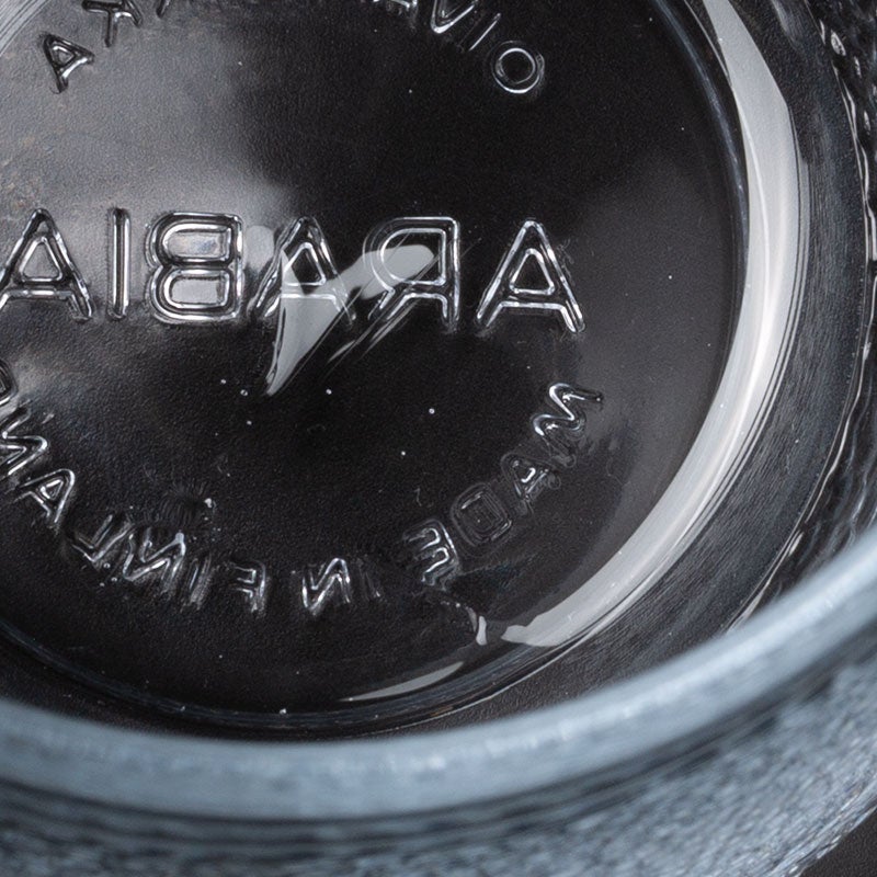 どこにでもありそうなビールジョッキですが、一度手にするとKrouviだと一目でわかるようになります。容量は500mlと330mlの2種類があり、日本で販売されることはあまりありませんが、1973年から繰り返し生産されているので、フィンランドのビンテージショップで見かけることの多いアイテムです。そして、生産時期や背景によってバックスタンプが異なるため、そこもまた集める楽しみになっているようです。ヌータヤルヴィ、アラビア、イッタラ、カルフのベア!そして、今回は「OIVA TOIKKA / ARABIA / MADE IN FINLAND」の新タイプ。2025年10月入荷分の500mlクリアは総数3,000個で、次回入荷の予定はありません。続けて500mlフロストも生産されたのですが、そちらは680個しか仕入れられませんでした。フロストは2025年末までに発売する予定です。