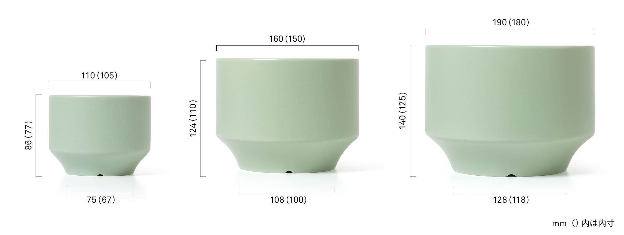16cm マットホワイト / 11cm マットグリーン / 16cm マットグリーン