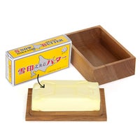 東屋のバターケースは山桜の無垢材を削り出して作られています。無垢材の魅力が溢れているので見た目にも立派で、安っぽさは微塵もなく、蓋をすれば木の塊のようです。僕はとても気に入っていて、もうずっと愛用し続けています。そして、この仕組みこそがバターケースに最適だとも思います。トレーの上にバターをのせ、深い蓋をかぶせる。一般的には深い本体にバターを納め、薄い方を蓋としている物ばかりですが、逆にしているところがとても賢い。このバターケースを使い続けてみれば、深い方を蓋にする仕組みは良いことばかりだとわかります。まず、バターケースへバターを納めるのが簡単です。また、深いケースに入っているより、トレーのようなフラットなところに置かれているバターの方が断然切り分けやすいです。バターナイフを使えば凄く薄く切ることもできます。そしてテーブルに置いた時の姿も野暮ったくなく、実にスッキリします。撮影をしていると、このバターケースをなんとかテーブルに加えられないかな?って考えるぐらい、食卓に置いてあると絵になります。もちろん、人により好みは分かれると思いますし、こういったスタイルで使うバターケースは少数派ですから、この方向が良いと思う人ばかりでもないのでしょう。でも、僕はもうこの方向しか考えられなくなっているぐらい気に入ってます。もし共感するところがありましたら、是非取り入れてみてください。