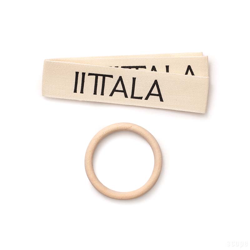 無数の気泡が入ったイッタラのオーナメントボール。スコープでは、一つ一つ違う表情を見せるアイテムだから、好きな個体を選んでもらえるように個別販売します。それで実際に個体を撮影してみると、丸いので転がってしまい撮影ができません。吊るして撮ると回るので、オーナメントボールを置いて固定するナニカが必要になりました。それでスコープの木工房が考案し製作してくれたのが、木製の小さなリングです。オーナメントボールを乗せるための小さな輪。無垢材から手仕事で削り出しています。このリングのおかげで撮影できるようになったのですが、これがあれば棚や机の上にオーナメントを置いて飾ることもできるね!と話は広がり、オーナメントを買ってくれた人へのオマケにすることを決めました。大きなガラスボールに小さなリングなので、絶対に転がらないというような物ではありませんが、うまく使ってみてください。オーナメントが手元に届いたら、まずはリングの上にオーナメントを置いて眺めながら、どこに飾るか?じっくり考えてみてください。