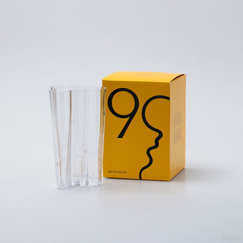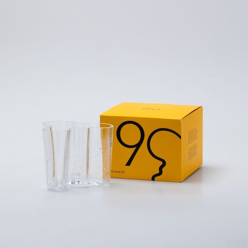 2025年冬に発売された、クリアガラスに無数のバブルが閉じ込められたガラスドームとオーナメントボール。それと同じ技法でアアルトベースが生産されました。昔はオイバ・トイッカのイグルーなど、気泡を使ったガラス製品も生産されていましたが、ここ最近はこうしたプロダクトは作られていないので、このバブル入りのアイテムが製作されていく流れは、スコープとしても大歓迎です。美しい気泡入りのベースは、アアルトベース誕生90周年の第一弾として登場しています。このバブルを生み出しているのは、古くから伝わる吹きガラスの技法です。熱したガラス表面にソーダ灰を振りかけ、さらに新しいガラス層を重ねることで、ガラス内部でソーダがガスを発生し、小さな気泡が生まれます。その無数の気泡の入り方は当然それぞれ異なります。バブルが多い方がいい人、少ない方がいい人、そこは好みがわかれるところですから、個別写真で好きな個体を選んでください。定番のクリアやホワイト、過去に生産された様々な色ガラス、そして高価な木型。それらを使ったアアルトベースのどれとも違った新しさが、バブルにはあります。アルテックの家具や照明、アアルトベースを並べてフィンランドスタイルの空間を整えている方は、ぜひ取り入れてみてください。見慣れたアアルトベースとはまた違った佇まいが、きっと新鮮な空気を運んできてくれますから。