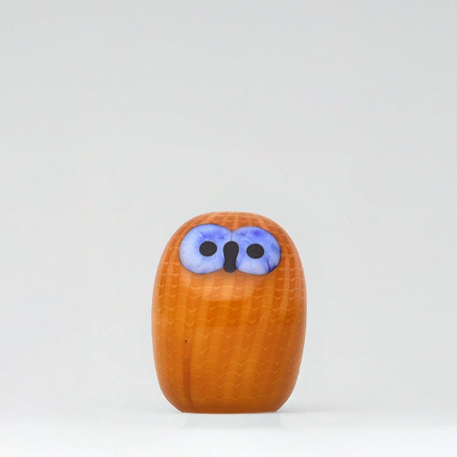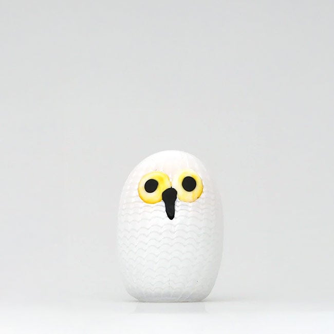 2025年11月に定番バードとして追加されたのが、Blue Magpie セビリアオレンジ、Night owl ダークグレー、そしてスコープでは発売が2026年4月になってしまいましたがOwlet グレーです。バード界の愛されキャラといえばフクロウ、目があるから個性的に見えて、飾ってあると愛着がわいてきます。なかでも長く続く定番オウル3型は、静かでズッシリ巨体の長男 Barn Owl、青い目をして常にギンギン!派手な次男 Owlet、そして小さな三男 通称 「リトバン」こと Little Barn Owl。 次男のOwletはいいサイズ感をしていて、飾りやすいだけでなく、存在感もあります。そして、このOwletが人気だからか、バリエーションが増えています。2026年4月現在のラインナップは、Owlet(59,400円)、Owlet サーモンピンク(80,300円・スコープでは在庫限りで販売終了)、そしてこのOwlet グレー(66,000円)の3種類です。この新作グレーの登場で、Owletに新たな事実が判明!特徴は青い目とラスターの装飾だと思っていたのですが、今回のグレーの装飾はラスターではありません。薄いグレーなのです。ギンギンな派手さが抜け、大人になったような落ち着きある静かなOwletが登場しました。静かな雰囲気ながら、ギンギンの青い目があることで、昔のトンガリ感が少しだけ残っています。オイバ先生のバードは、今も変わらずハンドメイドで生産されていますので、個体によって雰囲気が大きく異なります。目に限らず、あらゆる要素がバラバラ。そこに個性が生まれるところが素晴らしく、それがあるからこそ、自分だけの一羽に出会えます。スコープでは好みのバードを選んでもらえるように、一羽ずつ撮影して個別販売しています。ぜひ、運命のオウレットを見つけてください。
